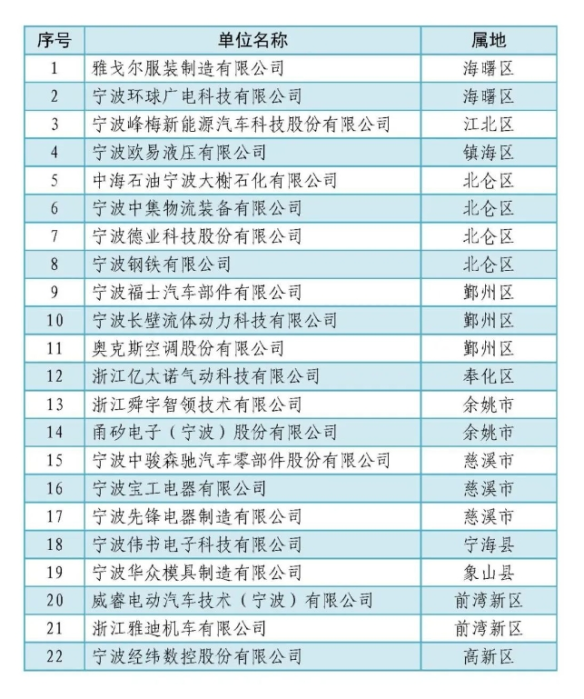 根據(jù)《中共浙江省委辦公廳 浙江省人民政府辦公廳關于印發(fā)〈浙江省企業(yè)管理現(xiàn)代化對標提升工程行動計劃(2021-2025年)〉的通知》(浙委辦發(fā)〔2021〕23號)和《關于印發(fā)〈寧波市推進管理創(chuàng)新提升行動計劃(2021-2025)〉的通知》(甬制高辦〔2021〕19號)要求,經(jīng)企業(yè)自主申報、區(qū)(縣、市)經(jīng)信部門初審推薦、專家評審等程序,認定雅戈爾服裝制造有限公司等22家企業(yè)(排名不分先后)為“2023年度寧波市管理創(chuàng)新提升標桿企業(yè)”,現(xiàn)予以公布。