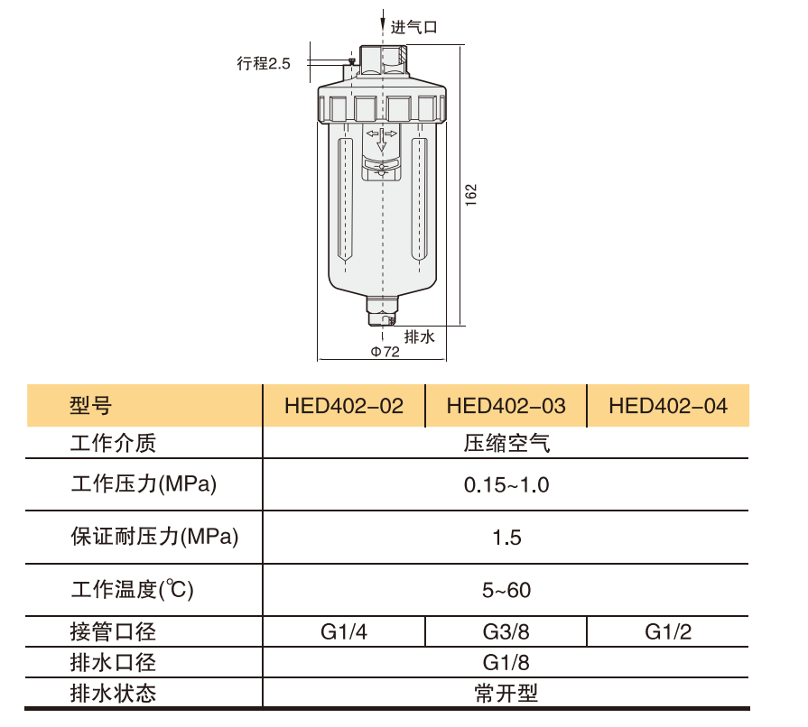 ? 特點:自動排水/零壓排水/水杯配有金屬保護置。