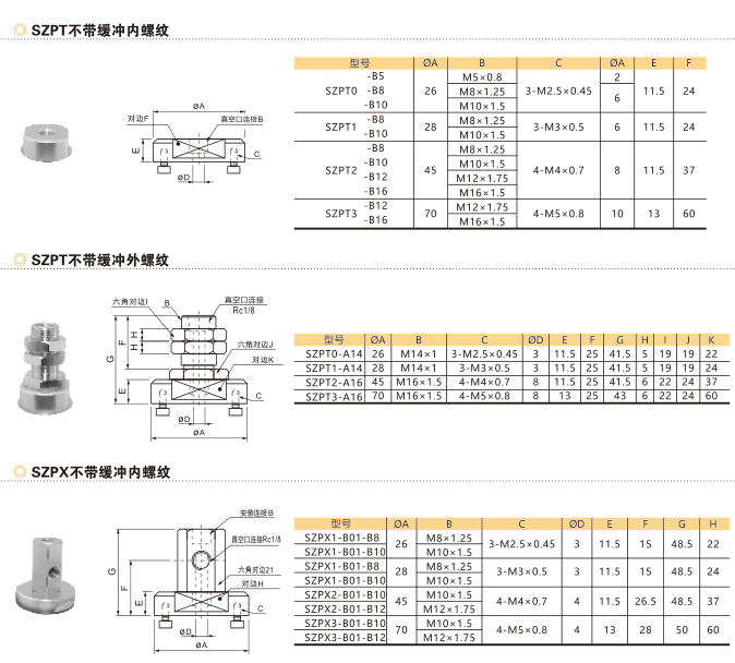 SZPT / SZPX 重載型不帶緩沖真空吸盤
