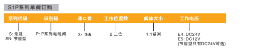 訂貨舉例:S1P系列集成閥組,1系列閥體,P系列二位三通直動(dòng)式電磁閥, 16位電磁閥,電壓為DC24V,工作口配自4氣管接頭進(jìn)氣口配8氣管接頭,G牙,其ERP編碼為:S1P16F-C4E4-C8