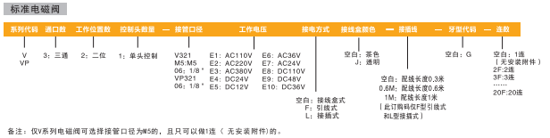 訂貨舉例:N系列電磁閥,標準閥體,標準先導加節能線圈,二位三通,單頭控制,接管口徑為1/8,DC24V,接線盒式,G牙,2連。其ERP編碼為:NM231-06E4-2F