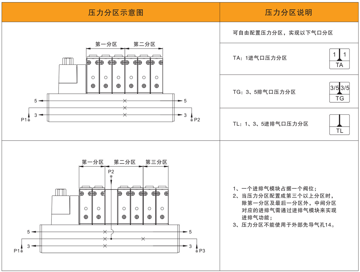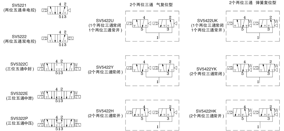 ? 同一閥組上的電磁閥可實現兩位五通、三位五通、四位五通(2個兩位三通)多種功能。