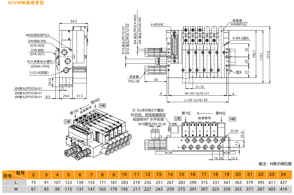 ? 集成閥組,集成布線;采用25針D-sub插座。