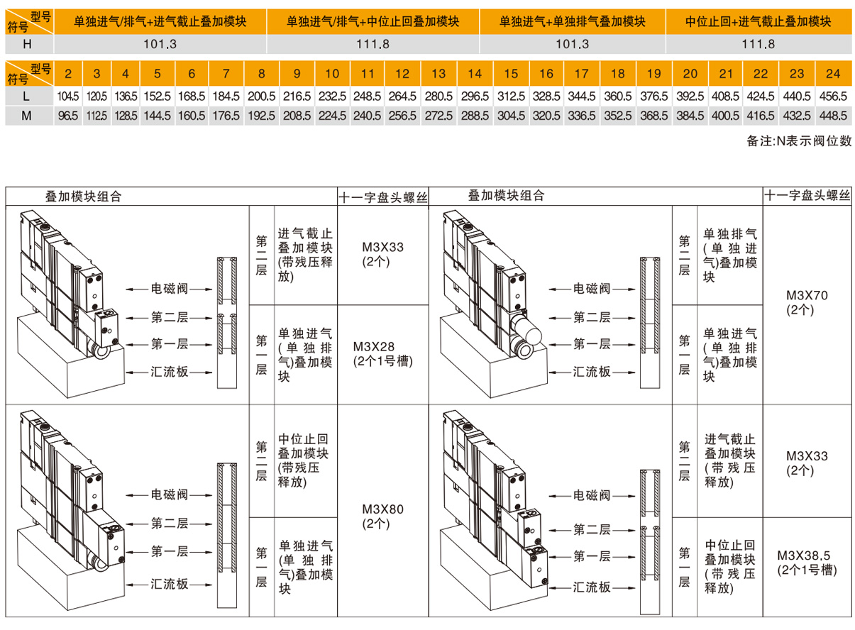 ? 中位止回疊加模塊(帶殘壓釋放):在同一閥島上配三位五通中泄式閥可實現氣缸長時間中間停止,配兩位五通閥可防止氣缸下落,以提高閥島的安全性能。