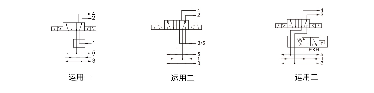 中封型、中壓型及2個兩位三通電磁閥組合使用;