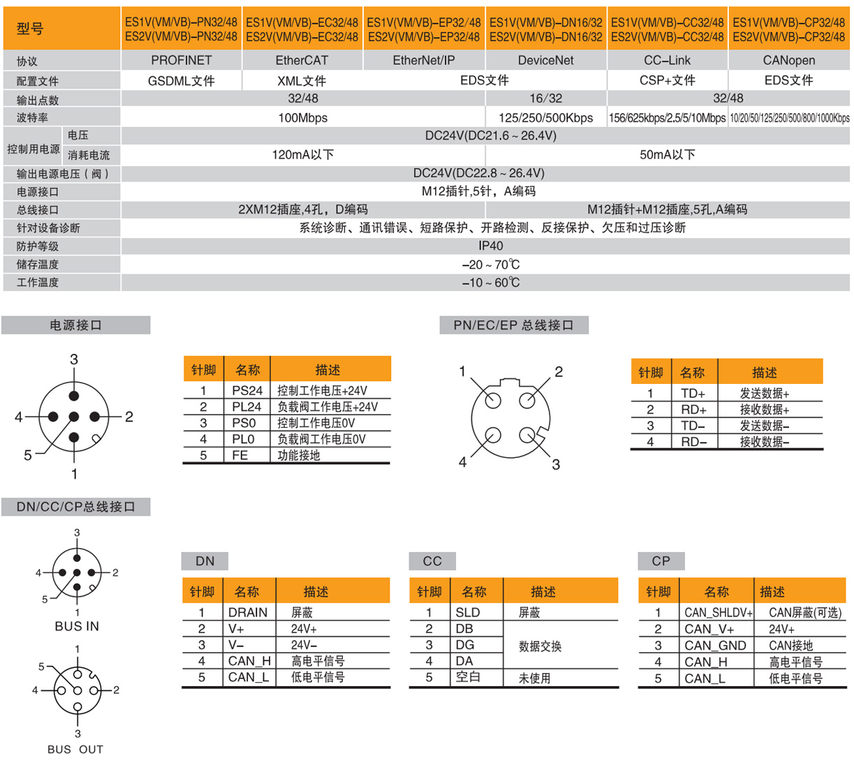 · 支持總線協議PROFINET、EtherCAT、EtherNet/IP、DeviceNet、CC-Link和CANopen。