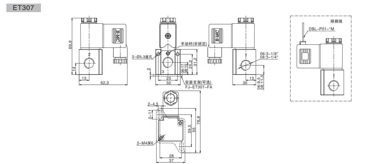 ET307/ETA307/ET307S 系列直動式電磁閥(兩位三通)