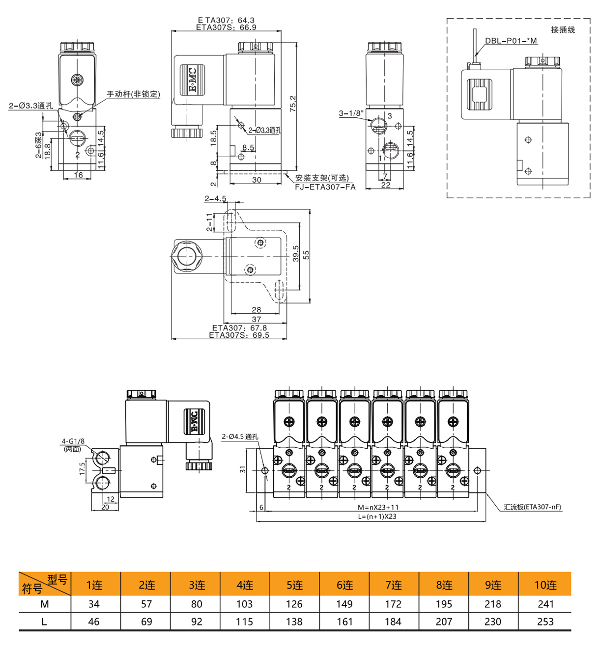 注:ETA307和ETA307S匯流板和盲板訂購碼相同。